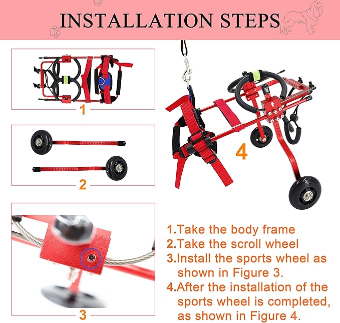 - [Friendly Tips]: Please measure your dog before buying. Pets are one of our family members. If they are DISABILITY, please don't give up. A WHEELCHAIR may give them a second life. I wish your pet a speedy recovery!