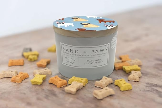 - Sand + Paws was created by three women who love candles and love their dogs. Enjoying many fun days with our furry friends on Dog Beach in Southern California has led to too many wet and sandy paws to count. Bring light and happiness into your life with this Sand + Paws candle with our signature painted and carved wood lid. Our candles neutralize pet odors and other unwanted household and kitchen odors