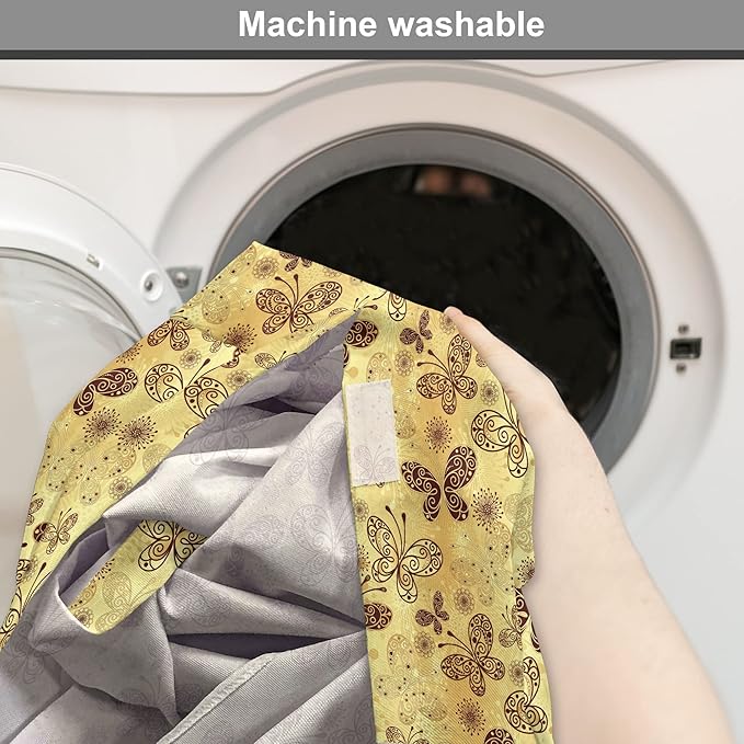Lunarable Yellow and Brown Dog Crate Cover, Butterflies with Lace Style Ornament Spring Season Beauty Nature Print, Easy to Use Pet Kennel Cover for Medium Large Dogs, 42 Inch, Chestnut Brown