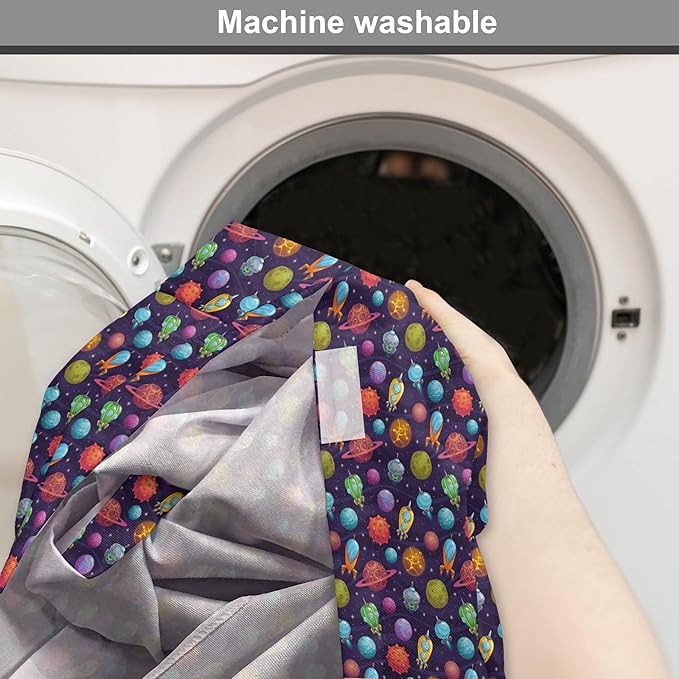 Lunarable Outer Space Dog Crate Cover, Cartoon Planets and Space Ships with Space Background Fun Science, Easy to Use Pet Kennel Cover for Medium Large Dogs, 42 Inch, Dark Blue