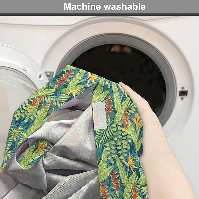 Lunarable Tropical Dog Crate Cover, Exotic Bird of Paradise Blossoms Banana and Areca Fan Palm Leaves, Easy to Use Pet Kennel Cover for Small Dogs Puppies Kittens, 22 Inch, Yellow Green and Dark Teal