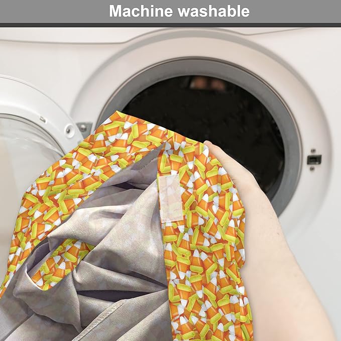 Lunarable Candy Corn Dog Crate Cover, Halloween Design of Cartoon Style Foods Scattered Randomly, Easy to Use Pet Kennel Cover for Medium Large Dogs, 42 Inch, Apricot Avocado Green