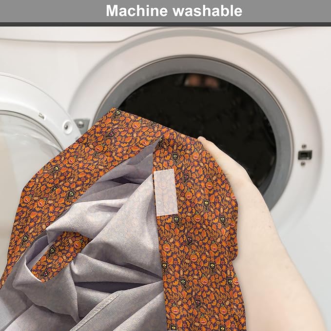Lunarable Vintage Halloween Dog Crate Cover, Halloween Themed Elements on a Purple Background Scary Mosters, Easy to Use Pet Kennel Cover for Cats & Medium Dogs, 30 Inch, Dark Purple Orange