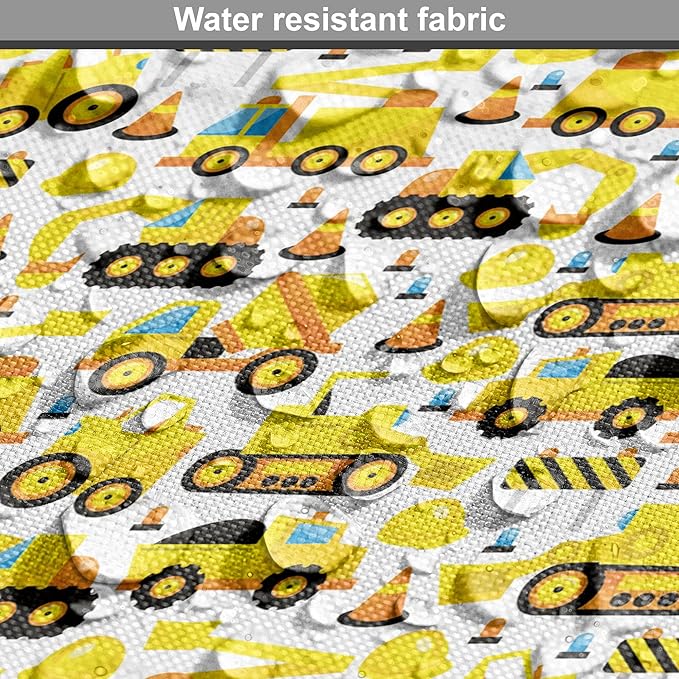 Lunarable Cartoon Dog Crate Cover, Construction Vehicles Style Machines Safety Building Theme, Easy to Use Pet Kennel Cover for Medium Large Dogs, 42 Inch, Yellow White Black