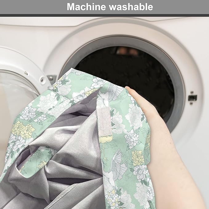 Lunarable Traditional Dog Crate Cover, Japanese Cranes Peonies Cultural Aspects Symbolic of Happy Life, Easy to Use Pet Kennel Cover for Small Dogs Puppies Kittens, 22 Inch, Avocado Green Pale Green