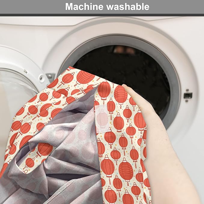 Lunarable Oriental Dog Crate Cover, Folk Lamps Cartoon Style Cheerful Pattern with Chinese Ethnicity, Easy to Use Pet Kennel Cover for Medium Large Dogs, 48 Inch, Pale Yellow and Vermilion