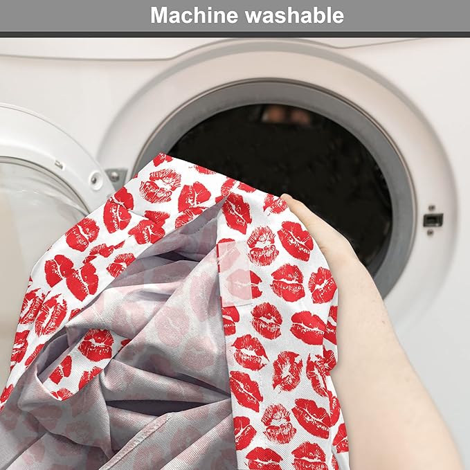 Lunarable Kiss Dog Crate Cover, Rhythmic Make up Red Luscious Lips Lipstick Imprint Illustration, Easy to Use Pet Kennel Cover for Medium Large Dogs, 48 Inch, Dark Pink and White