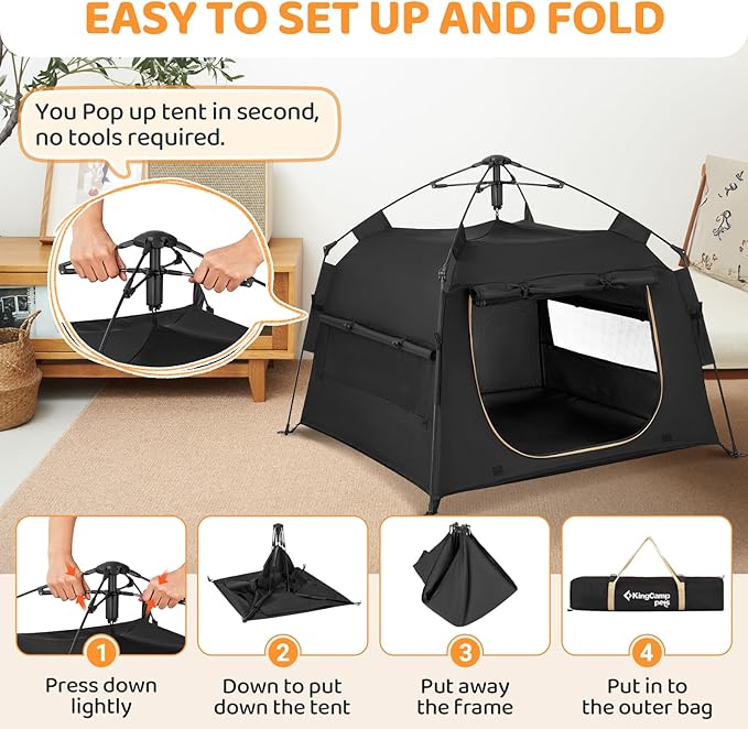 - DURABLE & EASY-TO-CLEAN: Crafted with reinforced 600D Oxford fabric and scratch-resistant mesh windows, this pet tent is tough enough to handle active paws and playful pets. The fiberglass poles offer strong, flexible support, keeping the tent stable indoors or outdoors. The durable materials also make cleanup a breeze, just wipe with a damp cloth.