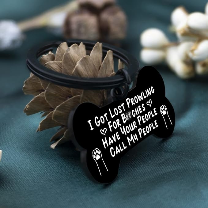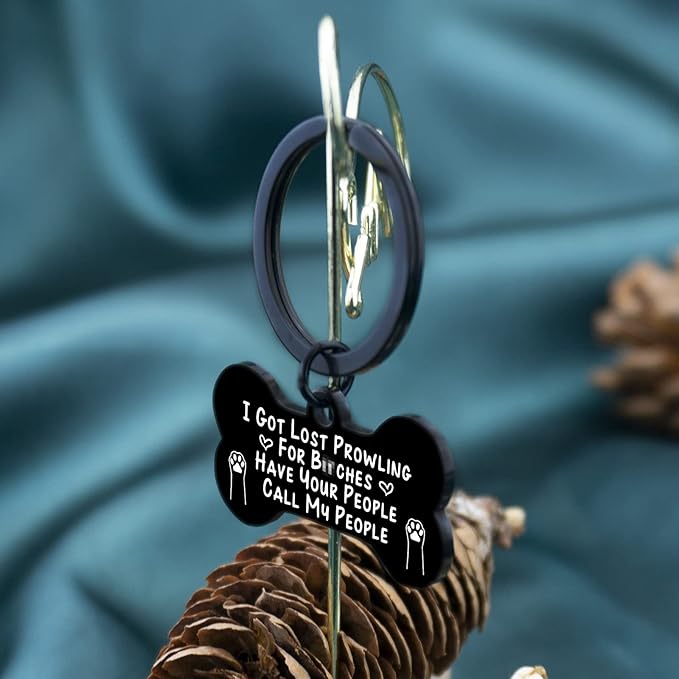 - Funny Pet ID Tag- Hilarious and funny pet ID tag - It reads "I got lost prowling for , have your people call my people. Suitable for any cute cat or dog.