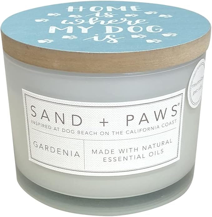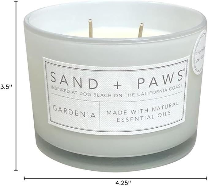 Sand + Paws Scented Candle - Gardenia - Additional Scents and Sizes –Luxurious Air Freshening Jar Candles Neutralize pet Odors and Enhance Home décor – 100% Cotton Lead-Free Wicks - 12 oz