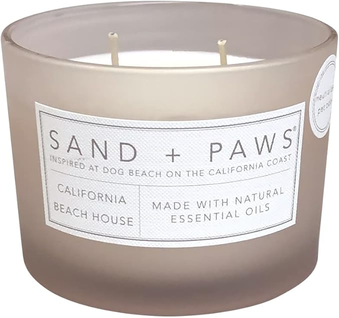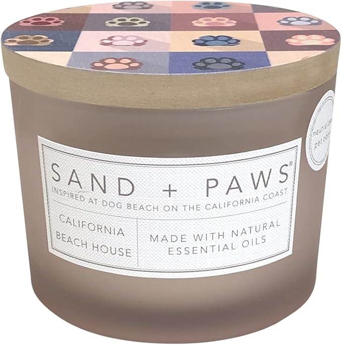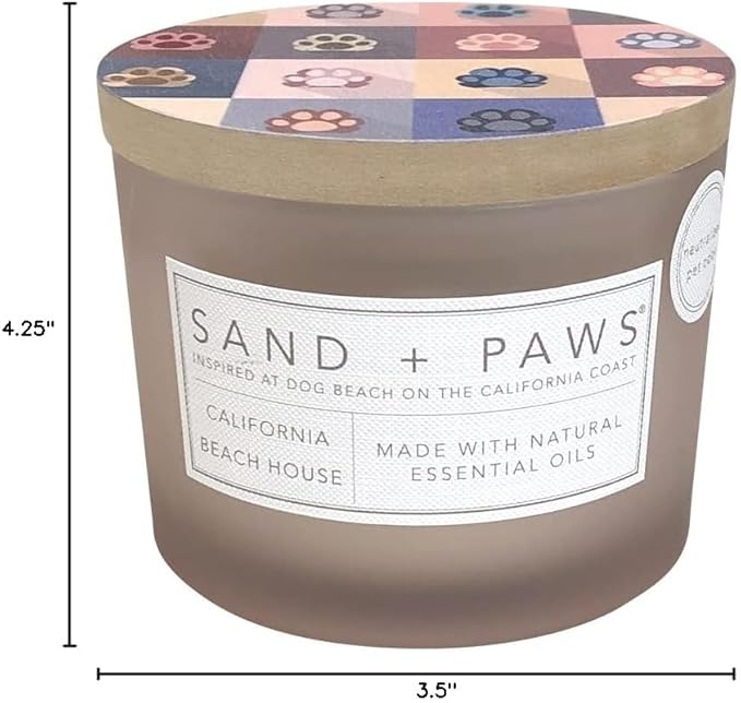 Sand + Paws Scented Candle - California Beach Houses –Luxurious Air Freshening Jar Candles Neutralize pet Odors and Enhance Home décor – 100% Cotton Lead-Free wicks-12oz
