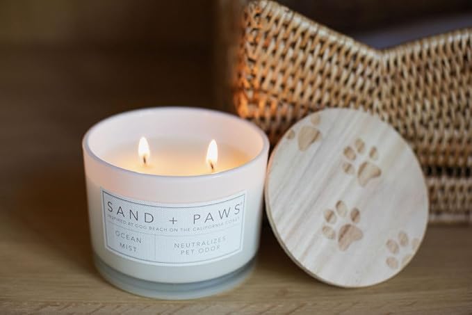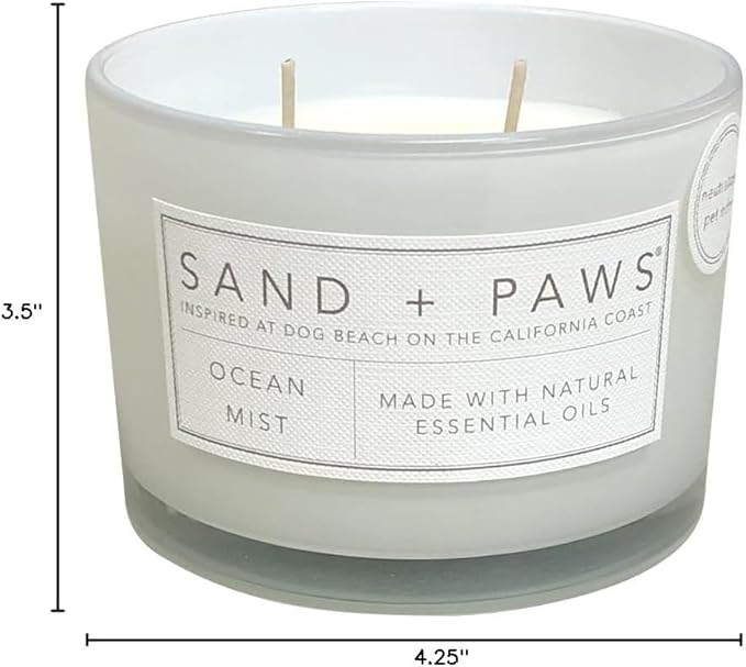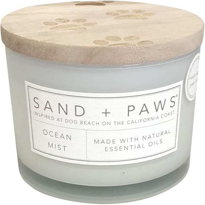 Sand + Paws Scented Candle - Ocean Mist - Additional Scents and Sizes – Luxurious Air Freshening Jar Candles Neutralize pet Odors and Enhance Home décor – 100% Cotton Lead-Free Wicks - 12 oz