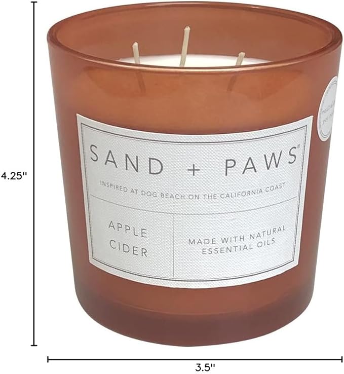 Sand + Paws Scented Candle - Apple Cider - Additional Scents and Sizes –Luxurious Air Freshening Jar Candles Neutralize pet Odors and Enhance Home décor – 100% Cotton Lead-Free Wicks - 21 oz