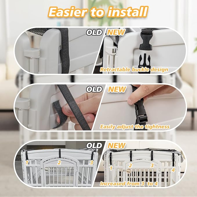 PJYuCien Dog Playpen Mesh Top Cover, Fits 36 Inch 4 Panels Regular Square Plastic Exercise Pet Pen, Telescopic Buckles Connections, Black (Note: Cover Only, Fence Not Included)