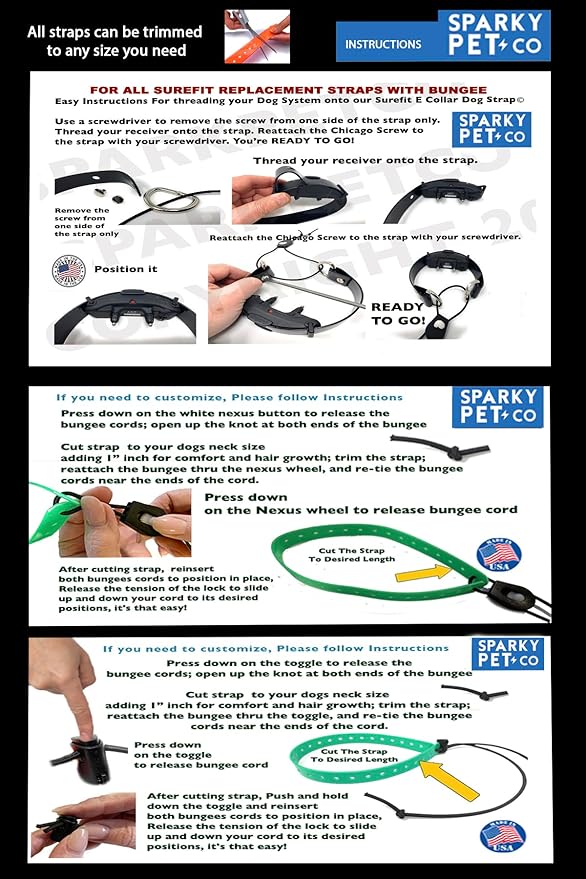 - ECOLLAR REPLACEMENT STRAP: Spring into the season by updating your dog's e-collar receiver strap! This 3/4" flexible surefit bungee collar by Sparky Pet Co is the perfect replacement for tattered, faded, and stained e-collar straps—designed for improved comfort, rigorous use, and superior receiver compatibility.