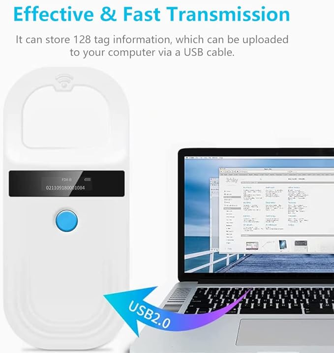 - 【128 Tag Information Storage】The dog chip scanner can store 128 tag information, which is very practical. The information can be uploaded to your computer via a USB cable.