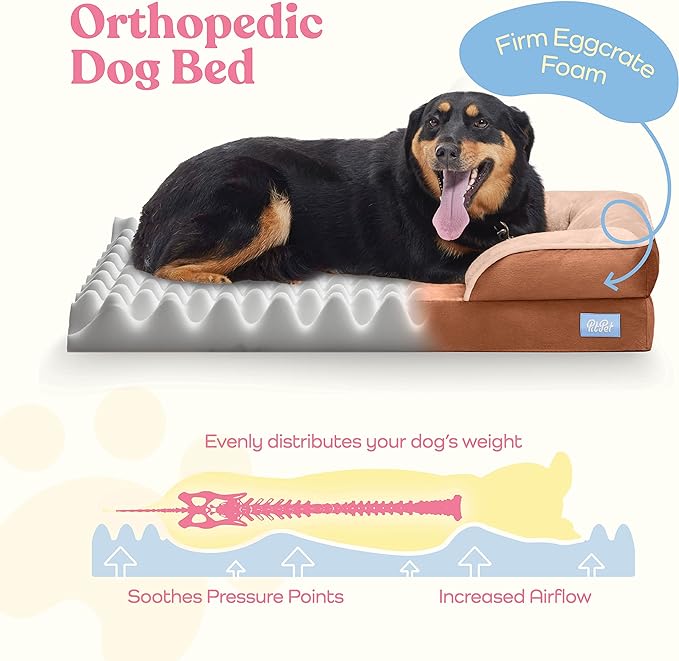 - ORTHOPEDIC DOG BED: Crafted of firm eggcrate foam, this dog bed evenly distributes your dog’s weight and soothes all its joints and pressure points. The elevated cushion provides back and neck support for your doggy’s comfort.