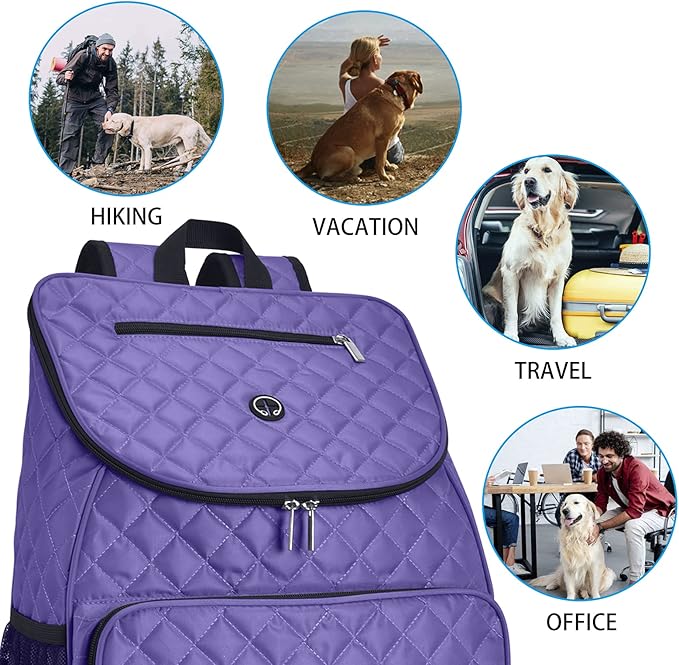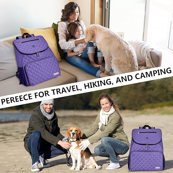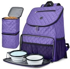 BAGLHER Dog Travel Bag Airline Approved Pet Supplies Backpack, Dog Travel Backpack with 2 Silicone Collapsible Bowls and 2 Food Baskets Purple