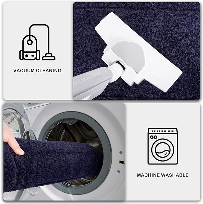 - EASY TO CLEAN: The stain and fade resistant polyester carpet surface can be easily clean by vacuuming. For a deeper clean, machine wash separately in cold water, using mild detergent. Tumble dry, low heat. Do not use bleach or fabric softener. Our door mat will not fade or wear out and will remain like new even after repeated washing.