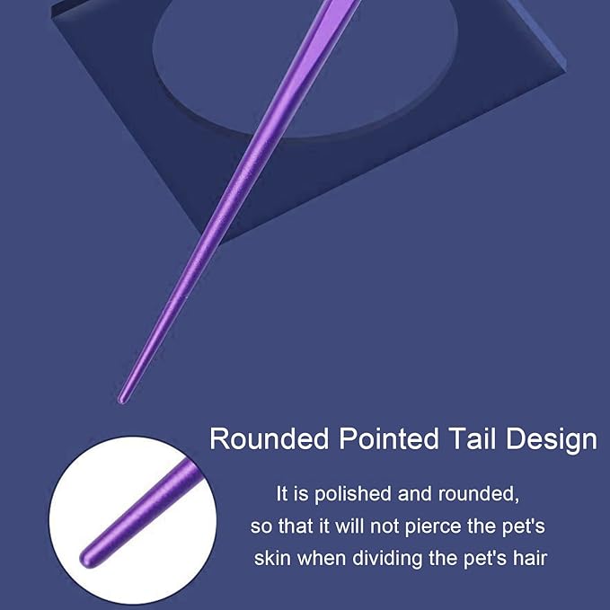 Round tooth metal dog comb is used for pet hair comb of dogs and cats to remove hair knots and entanglement. Professional pet hair comb styling comb(purple)