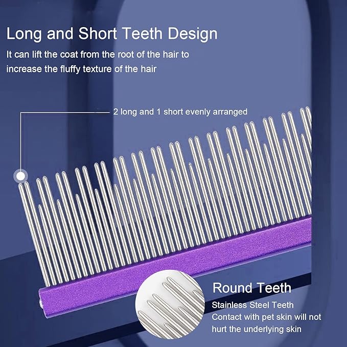 - 【Material】 High quality static free stainless steel teeth are strong and enough to prevent deformation and effectively prevent static electricity generated when dogs comb