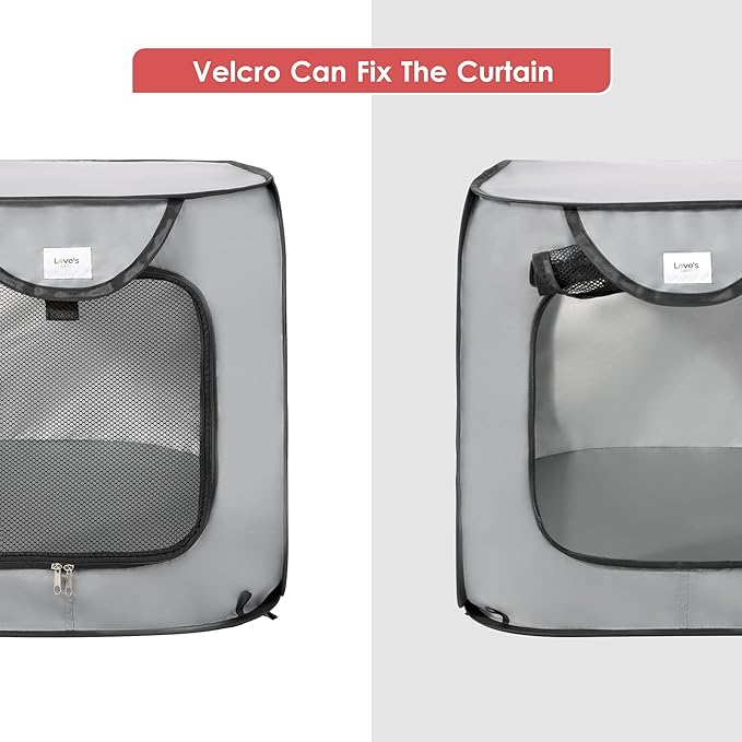 - DESIGN FEATURES: Mesh Ventilation on Front and Side Panels. Easy Open/Close Zipper Door. Can accommodate blankets and beds for Optimum Comfort and Personalization. If you have party with your friends or family indoor, or traveling outdoors. This pet bed offers a safe, cozy place for a cat or small dog to snooze.