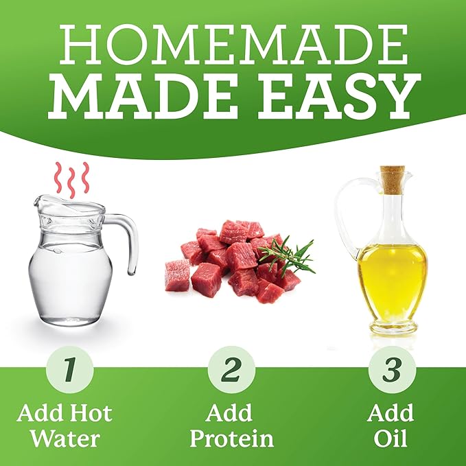 - 6.5 ounce bag makes 4, one pound finished meals; High in Calcium and other minerals; Grain-Free, Non-GMO Certified & Made in the USA; Holistic Formula with NO Synthetic Ingredients, NO Chemicals, NO Preservatives, No Dyes