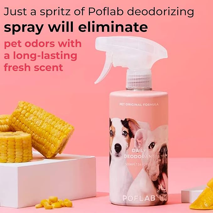- Effective odor neutralizer: Our pet deodorant contains corn starch infused with cyclodextrin, a powerful odor neutralizer that works by trapping and removing odor particles completely and safely. This advanced formula helps to eliminate unpleasant odors, rather than just masking them, leaving your pet's coat smelling clean and fresh.
