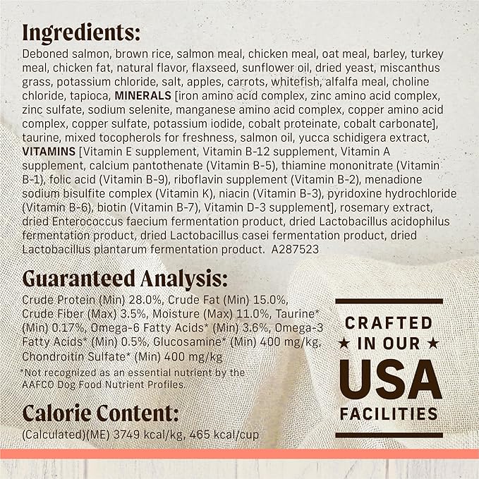 - Real deboned salmon is the first ingredient in this high protein dog food made with a holistic blend of whole grains like oats for digestive health, and vitamins and minerals for a balanced diet