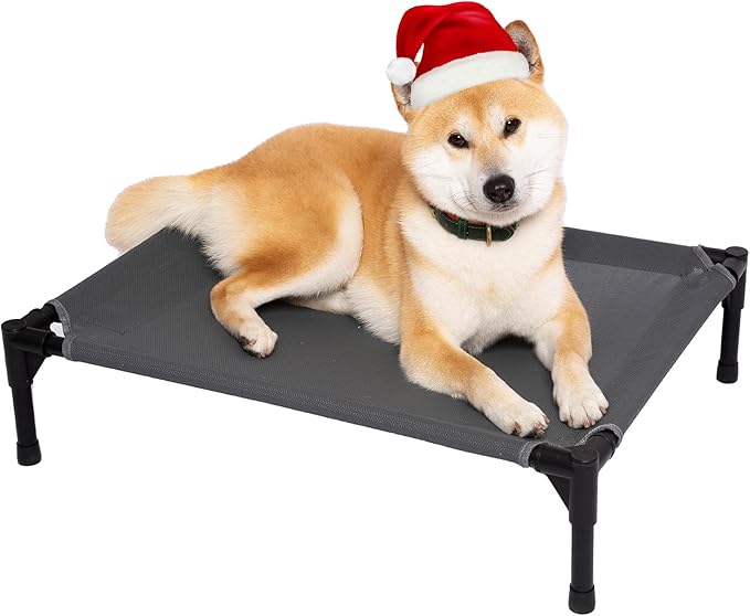 pettycare Elevated Outdoor Dog Bed - Dog Cots beds for Small Dogs, Heavy Duty Raised Dog Bed Waterproof, Cooling Elevated Dog Bed with Washable Teslin Mesh, Durable, Non Slip, 28 Inches, Grey