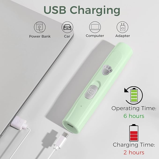 - Rechargeable & Portable: The Cordless Dog Grinder is rechargeable, includes a USB cable that allows you to easily connect to a laptop, AC adapter, or charging bank for charging. The lightweight and ergonomic body design also makes it easier to operate, allowing you to use this electric dog nail grinder anywhere