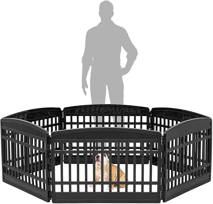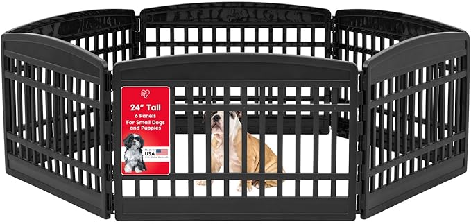 IRIS USA 24" 6-Panel Puppy Playpen, 61 x 61 x 24, Puppy Fence, Dog Playpen, Dog Play Pen Indoors, Pet Fence, Small/Medium Pets, Black