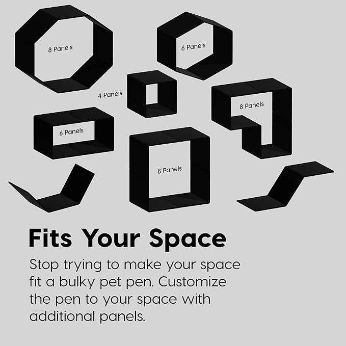 - EASY ASSEMBLY: Built with convenience in mind, the pet playpen can be put together by snapping the panels into place. It comes with 5 panels and 1 panel with a door, each panel featuring rubber feet to protect flooring and keep the pet pen in place.