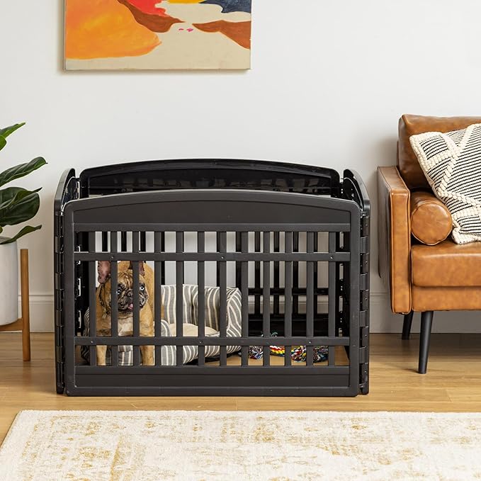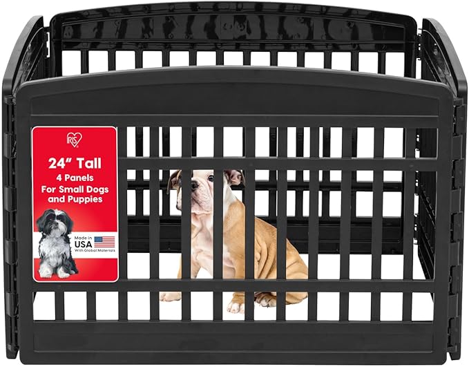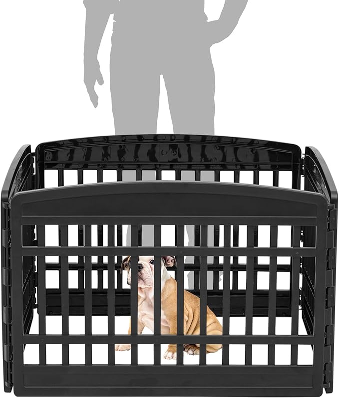 IRIS USA 24" 4-Panel Dog Playpen, 35 x 35 x 24, Puppy Playpen, Dog Play Pen Indoors, Pet Fence, Small Pets, Black