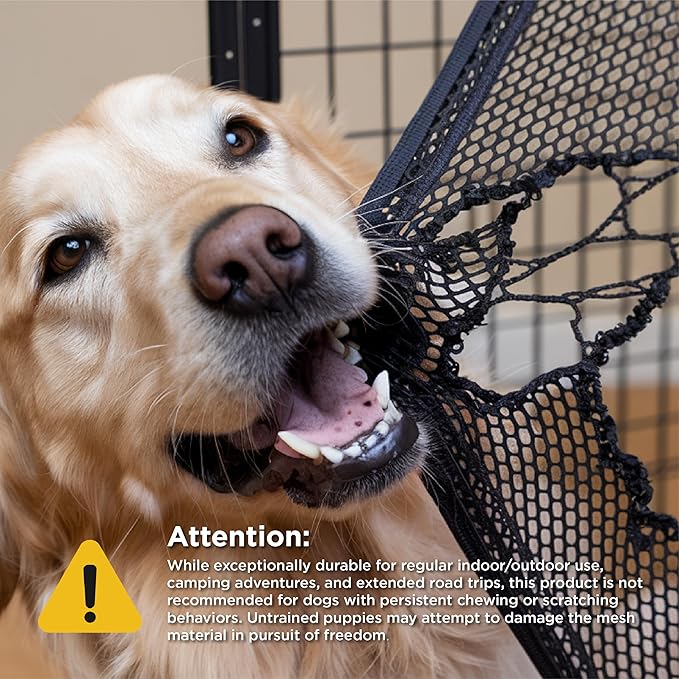 - Enhanced Safety: With a heavy-duty iron frame, this crate maintains its shape and ensures durability. Reflective strips on both sides enhance visibility, keeping your pet safe and visible. The crate is equipped with self-locking zippers, preventing your pet from escaping, while high-density durable mesh adds an extra layer of security. Additionally, an built-in leash further reinforces your pet's safety.