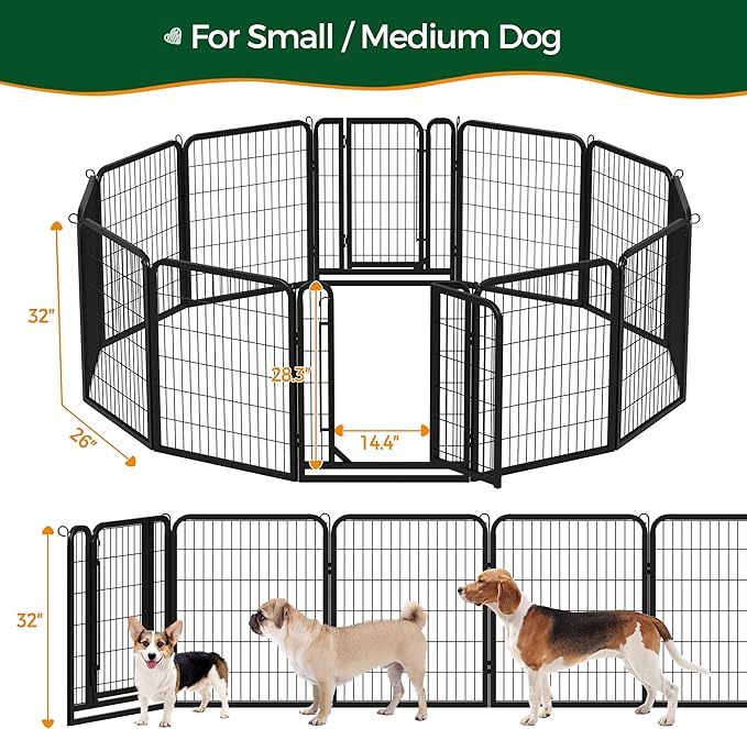 Yaheetech Dog Playpen Outdoor, 32 inch 12 Panels Dog Pen Indoor Heavy Duty Puppy Exercise Pen Metal Pet Fence for RV Camping/Yard/Garden