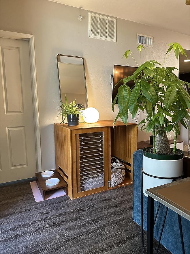 - - Luxury Fusion: Premium pet care merges comfort and style. - Refined Aesthetic: Beyond traditional crates: doubles as stylish home furniture. - Signature Craftsmanship: Distincitive Oak finish emphasizing meticulous design. -Solid Warranty: Backed by our unparralleled 'Best Warranty' guarntee. -Easy Assembly: User-friendly setup video, and team support.
