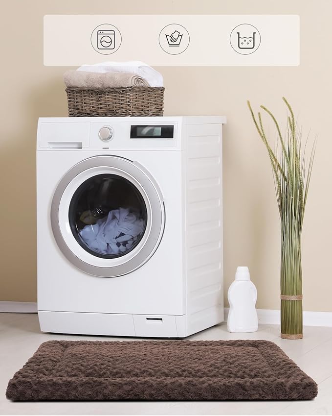 Washable Dog Bed Mat Reversible Dog Crate Pad Soft Fluffy Pet Kennel Beds Dog Sleeping Mattress for Large Jumbo Medium Small Dogs, 35 x 22 Inch, Brown