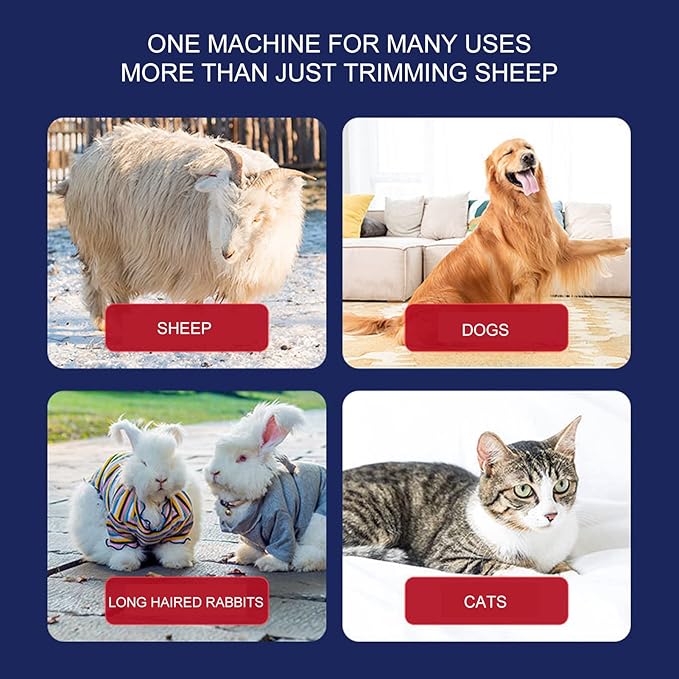 - CUSTOMIZABLE CUTTER LENGTH: Our electric sheep shears are designed with an adjustable cutter that can be customized to suit different types of coats and fur thickness. This feature enables you to efficiently trim and groom your pets or carpets without damaging or pulling their hair.