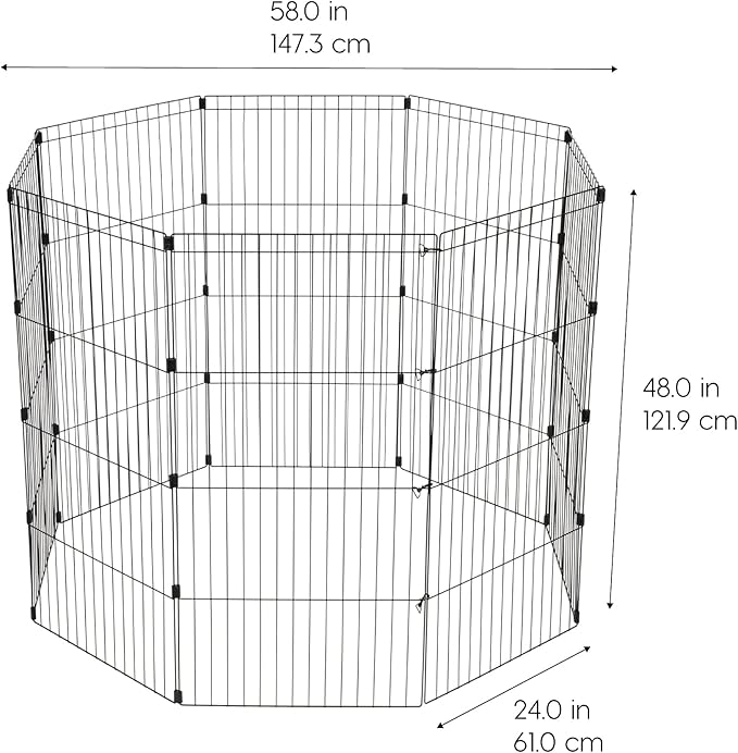 IRIS USA Metal Dog Playpen, 8-Panel 48" Pet Playpen, Puppy Playpen, Indoor/Outdoor Dog Fence, 58 x 58 x 48, Foldable, Customizable, Black