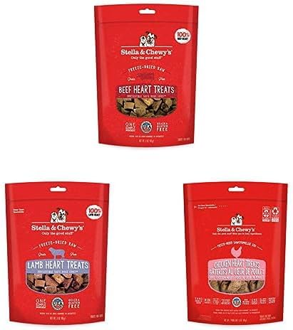 Stella & Chewy's Freeze-Dried Single Ingredient Heart Treats Bundle (Beef Heart, Chicken Heart, Lamb Heart), 3 oz Bags