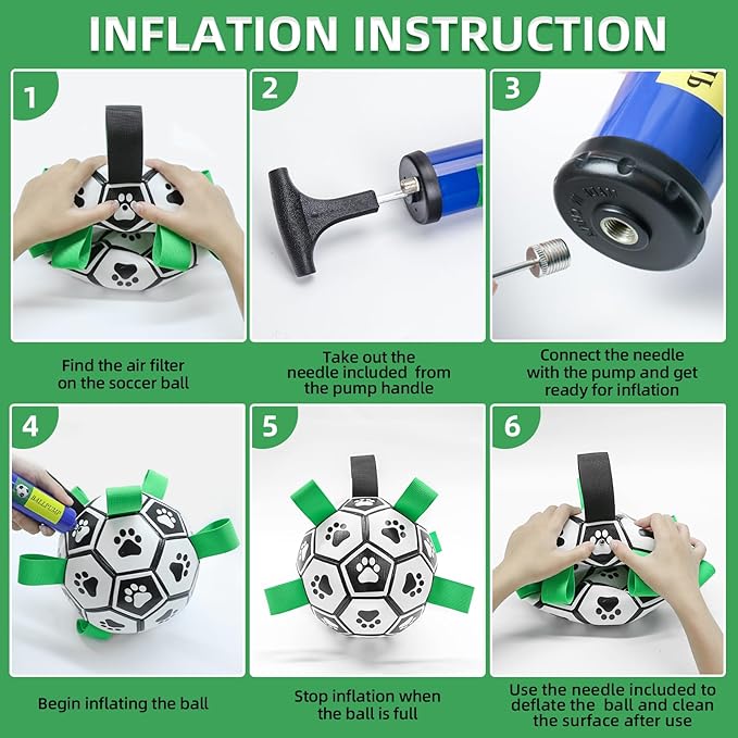 - Lightweight Dog Pool Toys: Indoor and outdoor dog toys can be played in the living room, pool, lake and beach, because it is also a water toys ball, no water absorption, no seepage, no deformation, lightweight, easy to float in water. Dog Soccer Ball with Grab straps are great for dog catching balls and increasing your dog's interest in playing