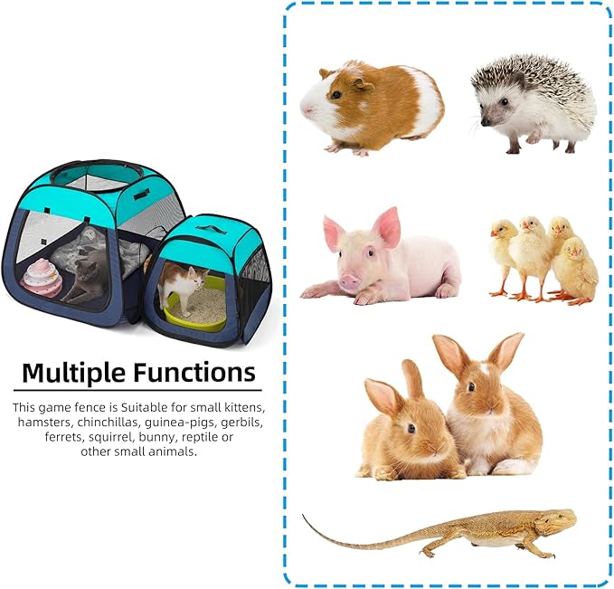 - Top & Bottom Zippered Design: The top zipper allows you to easily place fresh water, or toys. It provides easy access. You was able to keep him safely contained when you wasn’t able to monitor him. Bottom zipper you can remove it for washing, if necessary. It's also nice for outdoor use if you wanted to place the enclosure on your lawn.