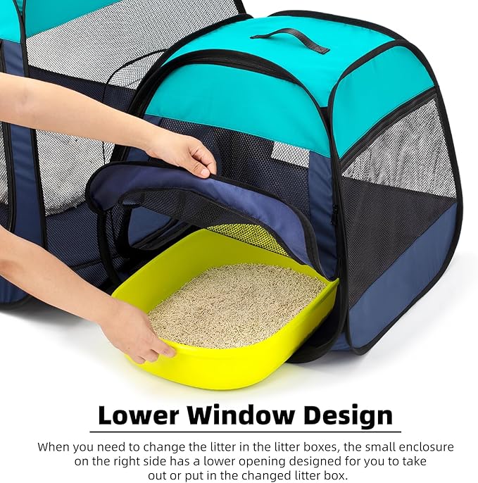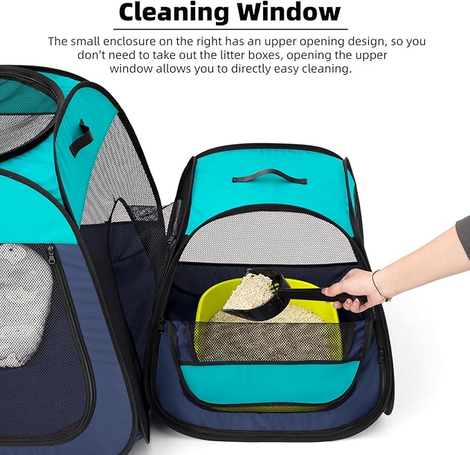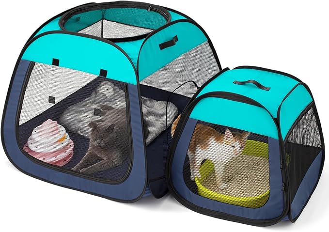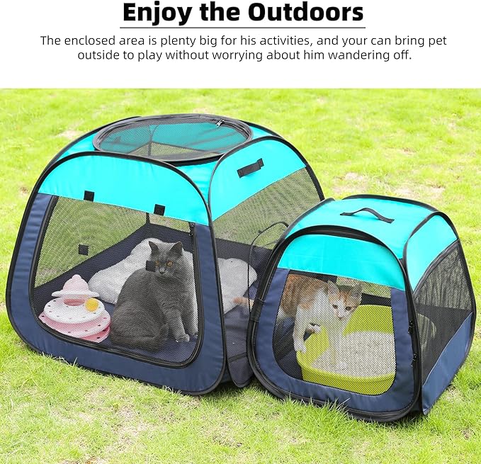 Tenrai Portable Cat Playpen, Trapezoidal Design for Better Standing, Foldable Pet Tent for Indoor and Outdoor Use of Puppy and Kitten, Dog Play Enclosure with Removable Bottom, Cat Houses & Condos