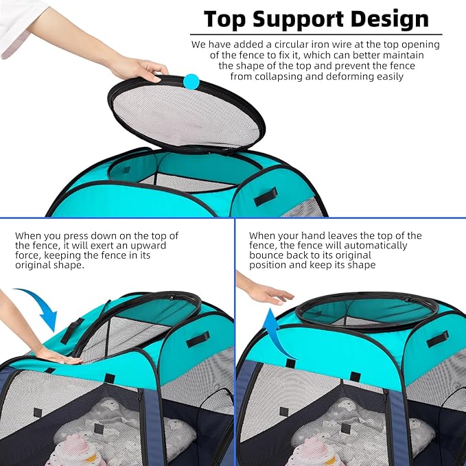 - Strong and Durable: Pet playpen is made of 100% polyester 600D oxford and anti-tear sturdy net. With steel frame and nylon zipper, your whole outside pet appears a strong castle.