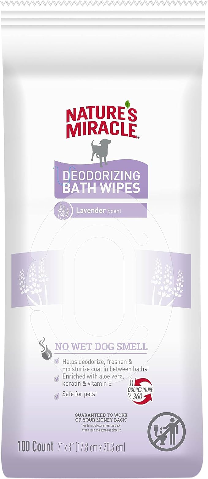 Nature's Miracle Deodorizing Bath Wipes for Dogs, 100 Count, Lavender Scent