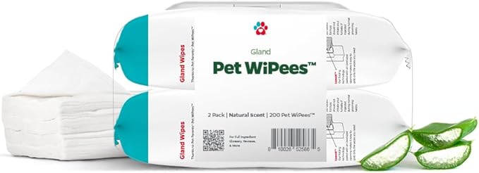 Pet Parents® Pet WiPees™ Gland, Dog Wipes for Paws & Butt, Cat & Dog Butt Wipes, Dog & Cat Gland Cleaning Wipes, 200ct (100 Count (Pack of 2), Natural)