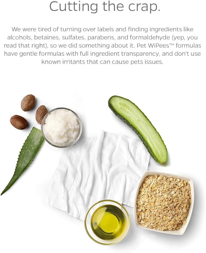 - NO HARMFUL CHEMICALS: We were tired of turning over pet wipes ingredients lists and finding drying alcohols, formaldehyde-releasing preservatives, and irritating betaines, so we decided to be the change we wanted to see for our furbabies. Each ingredient in Pet WiPees Dog All Purpose + Allergy was researched to be safe for dogs, are LickSafe to help not irritate sensitive tummies from normal grooming habits, making these dog wipes gentle enough for everyday use.
