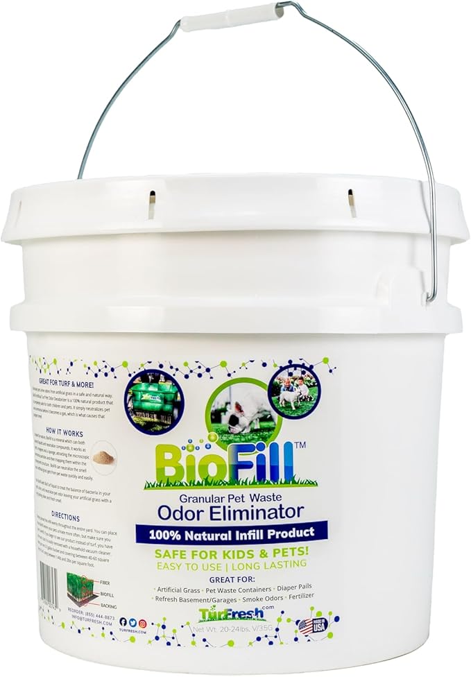 - Made of natural minerals, BioFill absorbs liquids and neutralizes compounds, acting like both a sponge and a magnet for your pet’s urine; Apply evenly and brush into your turf for best results