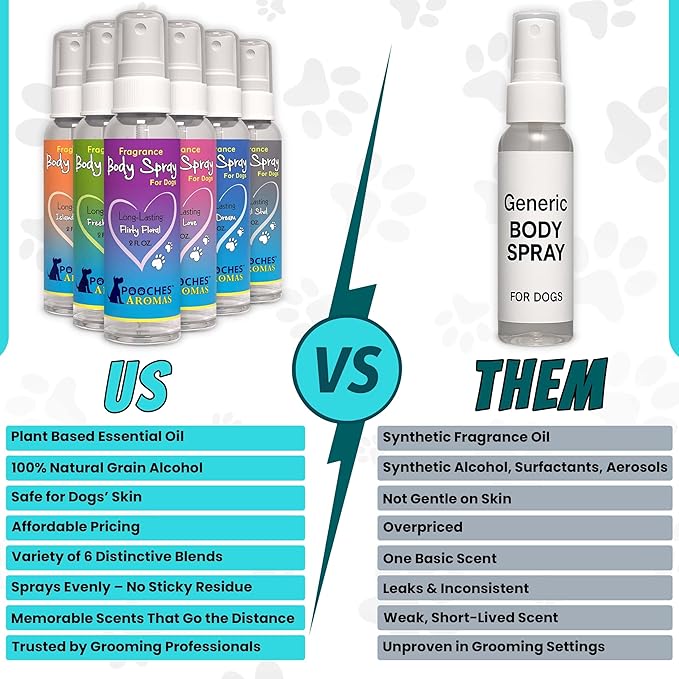 - 🐶𝐋𝐎𝐍𝐆-𝐋𝐀𝐒𝐓𝐈𝐍𝐆, 𝐒𝐖𝐄𝐄𝐓 𝐒𝐂𝐄𝐍𝐓: Give your pet a fresh, Pooches Aromas Natural Dog Cologne that lasts for weeks! This dog cologne spray effectively controls odors between baths, keeping your furry friend smelling clean and pleasant—never overwhelming to sensitive noses, including your pet’s.